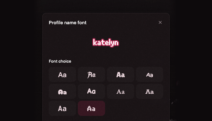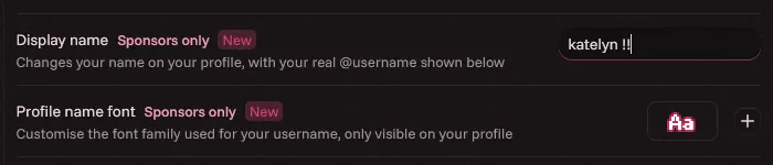 style your name with flair(bleh only)sponsors can choose from a selection of custom fonts and custom font styles to show on your profile header