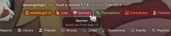 | custom badge of your choosing choose an icon from either tabler or lucide. cannot be a copy of a pre-existing last.fm or bleh/bwaa reserved badge. can be any text of your choosing as long as its not nsfw or hateful. | ||